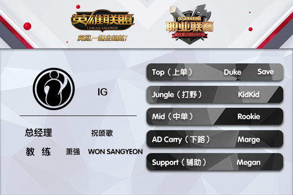 在中野位置上,IG并没有做出人员变动,依旧是大腿Rookie以及上赛季改为打野位的Kid。不变也意味着稳定,作为核心的Rookie,是队伍在成绩不佳时为数不多的稳定carry点,新赛季他选择留在IG也让粉丝们感到欣慰。而身为韩国人的Rookie中文已经是相当熟练,有他帮助,Duke与队伍的交流也变得更为方便。而Kid从AD转为打野位后,发挥较之前更为出色。加上Zz1tai出走后他成了队内资历最老的队员,Kid的留队也起到了稳定军心的作用。