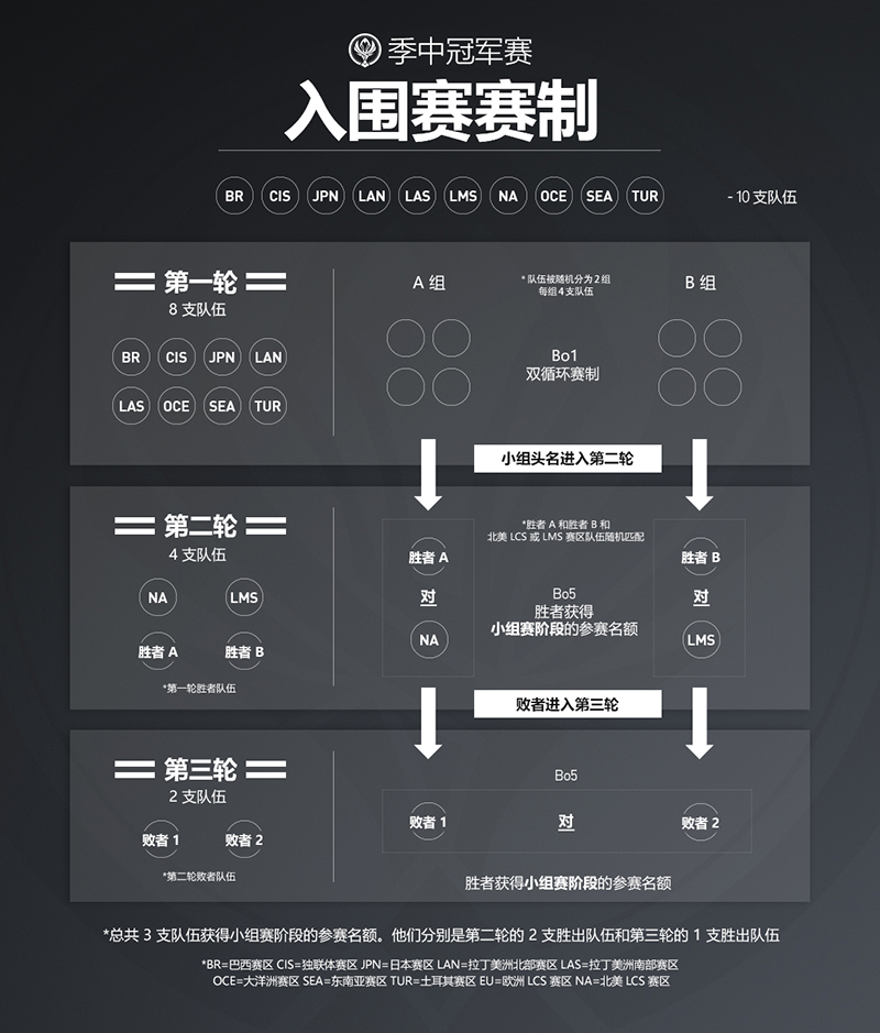 ● 赛区入围名额位置会根据过去两年的季中冠军赛和全球总决赛成绩来决定。