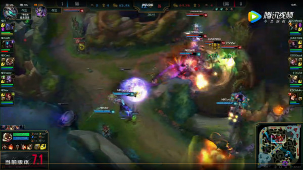 一个背景信息是,当雷克塞(Swift)在大龙处排视野时,就已经清楚对面伊莉丝(Fireloli)的位置与其他队友较远。这个时候,Newbee打野决定开团,好运姐(Meiko)与对面打野的同时闪现,直接把雷克塞带入自家阵中——伊泽瑞尔(Zet)躺枪也被雷克塞顶起,同一时刻,下路带线的慎(V)大招支援,另一边库奇(Coco)利用弹药包封住一边退路,且对EDG下路形成了强制位移效果——这个时候的EDG阵型过于集中,相比起快速击杀雷克塞,他们更愿意先拉开阵型,避免慎落地后带来的更大威胁,此外,这四人当中能够产生控制类效果的只有杰斯(Scout)锤形态下的E技能——连锁反应带来的结果就是,慎成功落地并在人群中嘲讽到对面ADC,杰斯的E技能仅仅是慢了一个瞬间,伊泽瑞尔倒地,EDG溃不成军。或许你会问那谁来保护Newbee的ADC呢?在这个地形中,婕拉一人就足够限制蜘蛛女皇。