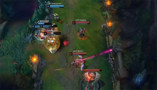 在IG对阵GRX的比赛中,IG早早发起了一波四人包下的攻势,而GRX的下路选手Stitch,在面对IG的进攻时,也是过于紧张犯下了失误。他的韦鲁斯在蓄力后竟然反向施放Q技能,向着游戏的墙外射出了一箭。解说和观众们纷纷表示,Stitch这波反向Q可以说很精髓了!