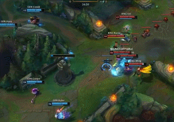 在RNG对阵GEN.G的比赛中,两支顶级队伍展现了最精彩的比赛,GEN.G利用他们擅长的防守反击战术,一度在比赛中期取得场面的主动权。而Letme的赛恩则是在关键时刻挺身而出,他抓住了霞没有大招的弱势期,果断选择大招超远距离开团,配合队友一波击杀了Ruler。RNG从中路长驱直入,直接平推基地瞬间结束了比赛。