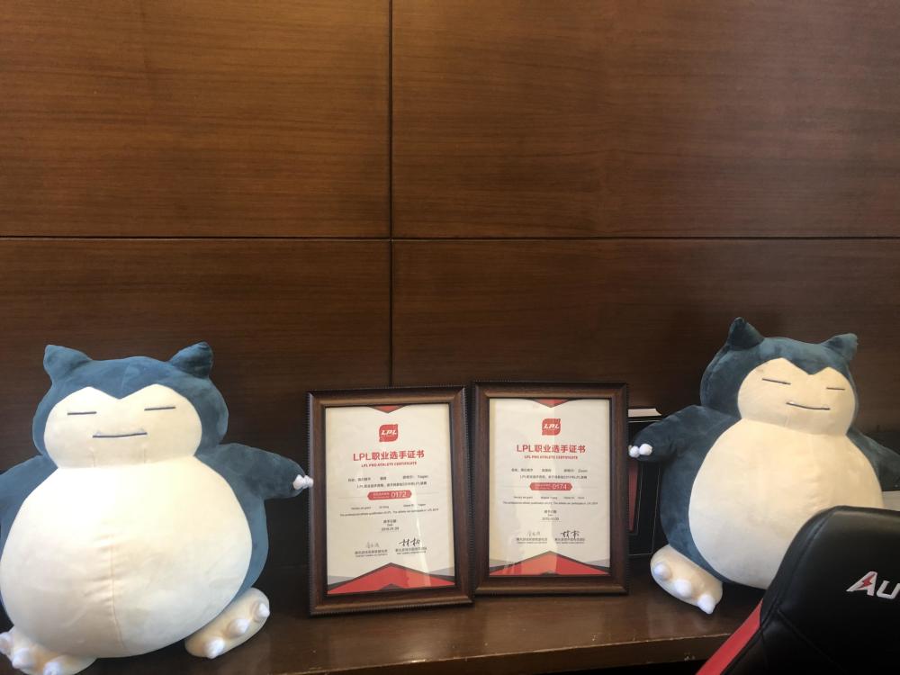 训练室里的大屏幕前摆着的两个卡比兽,是粉丝送Zoom的礼物。夏季赛的一次采访中,圣枪哥谈到和Zoom的对线,别出心裁地用了“卡比兽”来形容Zoom,后来这个称呼也被Zoom本人认可,随后卡比兽便成了Zoom的便签之一。