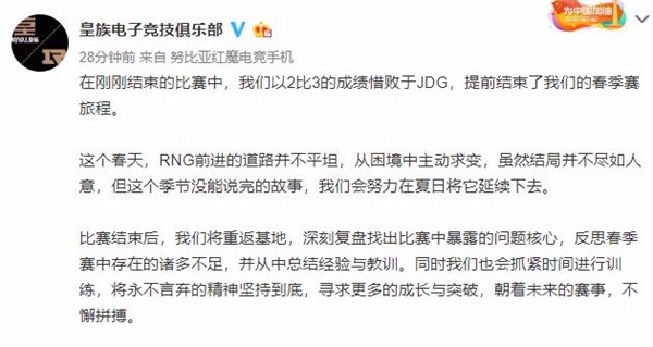 从去年的卫冕冠军到今年无缘四强,RNG在本赛季也是经历了不少坎坷,Letme和Mlxg的休息让队伍必须进行重新磨合阵容,教练组的变动也让RNG在LPL春季赛起伏不定。尽管RNG本赛季的成绩不尽如人意,但相信他们会秉承着永不言弃的精神。让我们一起为RNG加油,期待他们在LPL夏季赛中打得更好,并且也一同关注LPL春季赛的后续赛事。