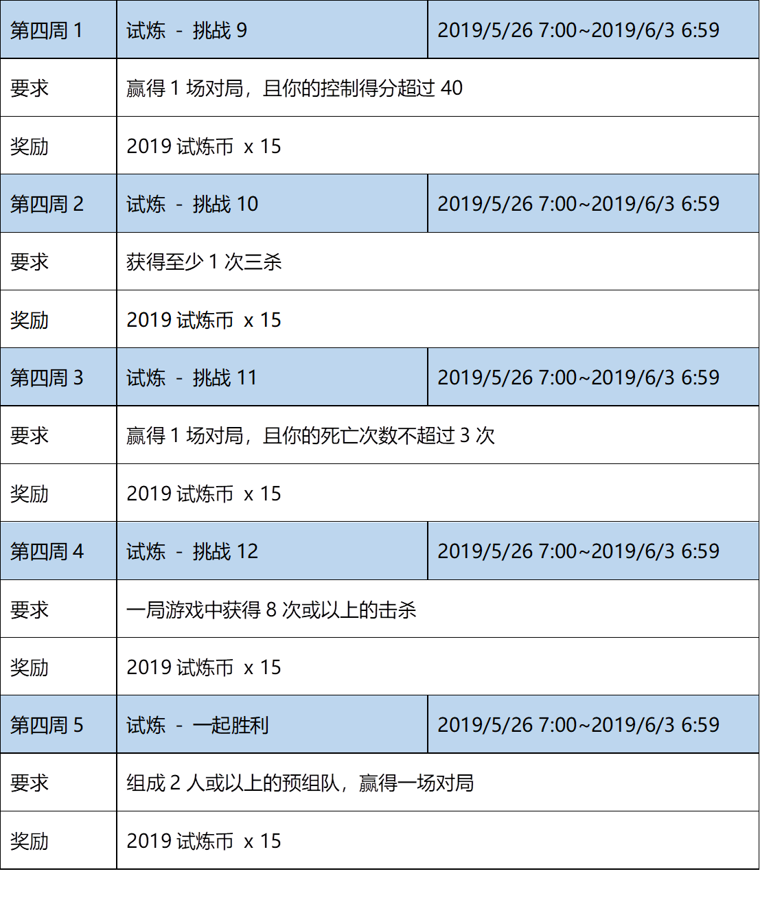 活动期间,召唤师可通过匹配、排位模式的召唤师峡谷地区游戏、大乱斗游戏获得试炼币。如果召唤师尚未购买“试炼2019门票”,那么通过游戏获得的试炼币将进入“试炼币贮藏”,后续购买门票即可立刻解锁使用。