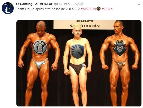 小组赛的第一次欧美大战中,G2顺利横扫了TL夺得胜利,欧洲的观众们再次狂欢起来。而《英雄联盟》法语解说台官方推特,也是在比赛结束后发布了一张肌肉猛男的选秀图,来调侃TL的二连败。配图中的iG和G2身强力壮,而TL则是弱不禁风,引起了外国观众的热议,而TL也是一夜之间从2-0战绩变成了2-2战绩。