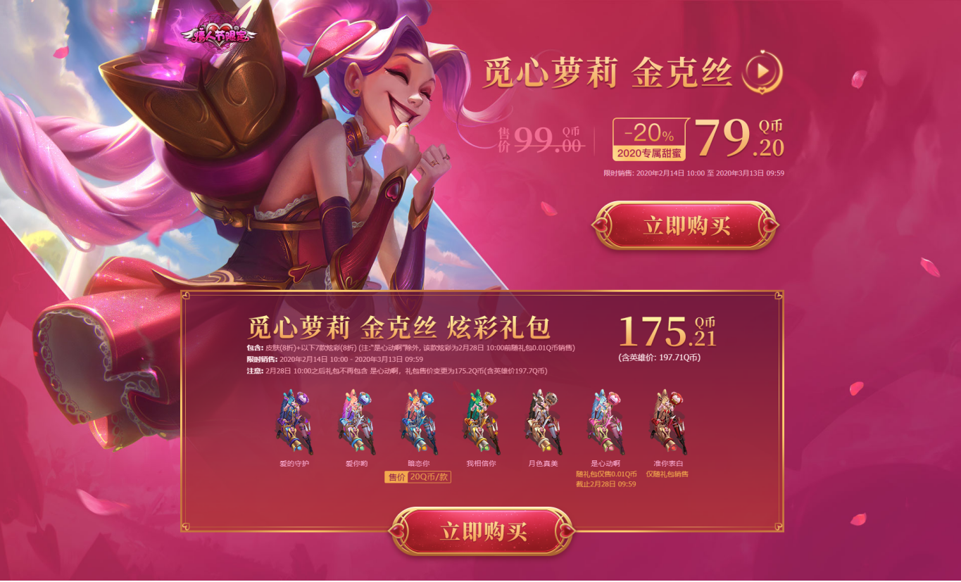 2020年2月14日情人节即将到来,祝愿天下有情人终成眷属!觅心萝莉 金克丝和觅心猫猫 悠米即将结伴来到召唤师峡谷,以下是关于她们的一些信息: