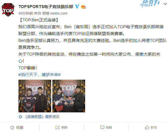 昨天,IG战队辅助选手Baolan发表微博称与战队合约到期,并