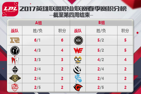 图1:LPL春季赛积分榜3月5日,《英雄联盟》LPL春季赛异组