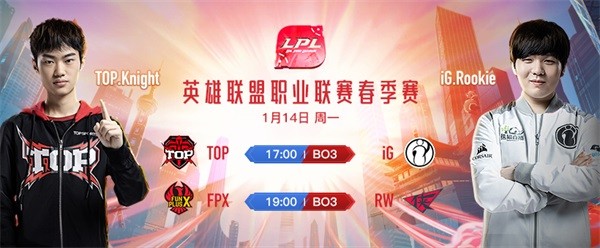 1月14日下午17:00,2019英雄联盟职业联赛(LPL)春季赛第
