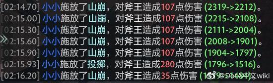 实际测试结果如图所示,小小一共造成了107*5+280+35=850点伤害。从战斗记录中可以看到,斧王确实收到了5次三倍山崩伤害和1次一倍山崩伤害,850与856的差距可以认为是处理小数点计算时的差异,所以可以认为前边推导的理论是正确的。