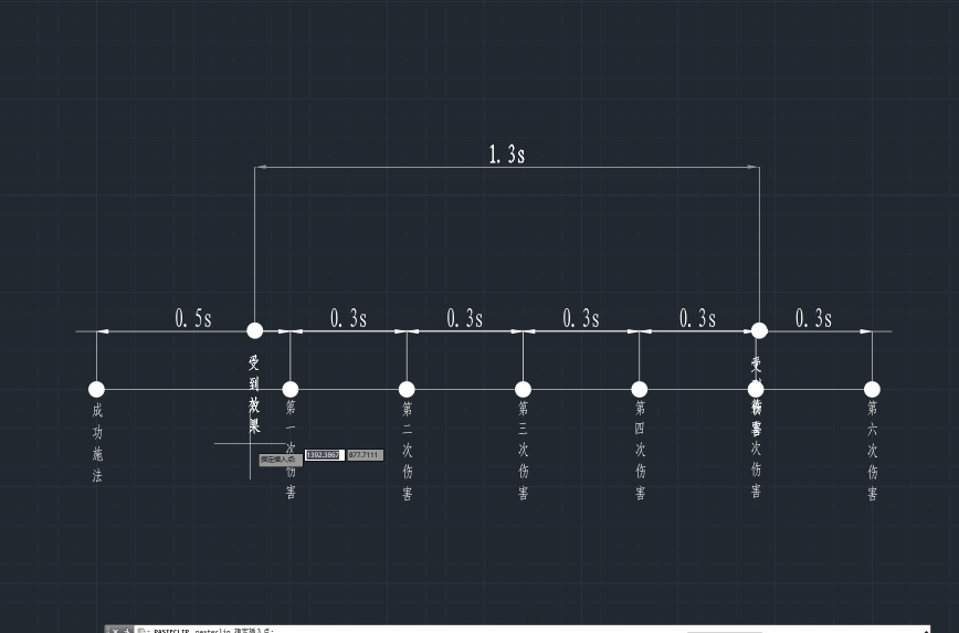 技能持续时间与造成伤害的时间点如图所示。