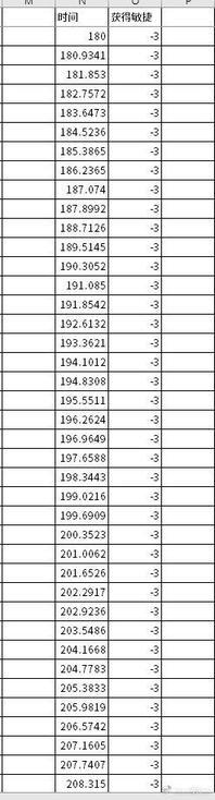 3. 当第一次攻击发出180秒后,这3点敏捷就该还回去了,所以应该另起2列记录失去敏捷与时间的关系,时间为前面记录时间+180s,敏捷为-3,如图3。