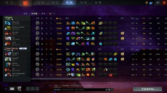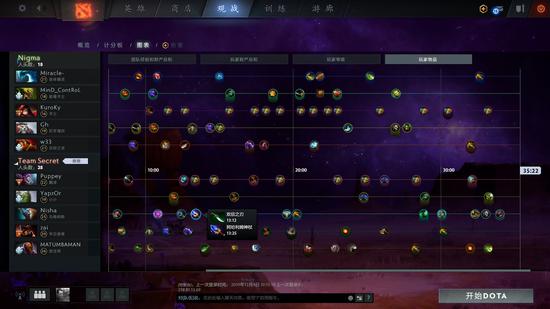 我们以对阵Secret对阵Nigma的第三局为例来说明中单猛犸的加点思路与打法。
