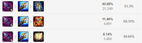 相比卡特和小鱼人,卡萨丁对于蓝量的要求要高上许多,而且卡萨丁要比他们更吃发育,因此时光和大天使都是他的核心装备,这两件出完才能考虑别的装备,巫妖中亚都是不错的选择,如果自信一点的话也可以直接做出杀人书,但这是非常剑走偏锋的玩法,后续可以补出帽子和鬼书等装备来弥补自己的输出。