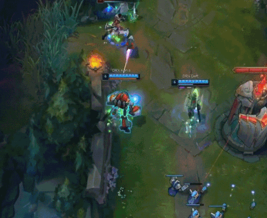 在线上主要是靠远距离的E+奥术彗星来消耗,最好是用Q和W把温度叠到黄温,这样E就有了50%的额外伤害加成。除非对方主动上前,否则不要用Q上去消耗,很容易被对方ADC反打一通。6级是兰博的强势期,配合ADC两个大招可以瞬间融化对方的下路双人组。