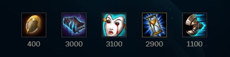圣物之盾出门,先做出鬼书,鬼书能够有效克制对方的回血技能,再做出大面具,大面具本身就很适合兰博,再加上辅助位上的兰博经济不够,出面具也能靠着被动打出不少的伤害。再补上一个沙漏,因为点了完美时机沙漏也不会有多贵,辅助位置一般是出完这几件游戏也就结束了。