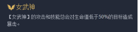 天使+女枪组成两女武神阵容,该羁绊可让女武神英雄在对生命值低于一半的敌人造成暴击伤害,主C天使快速收割。