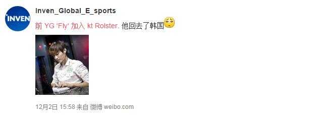 前YG中单Fly离队回韩国发展,被爆料加盟KT战队。<br /> <br />